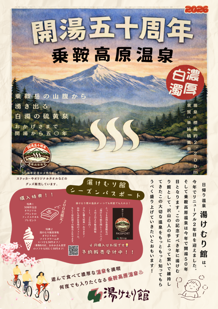 白濁の湯を1年間、心ゆくまでお楽しみください。